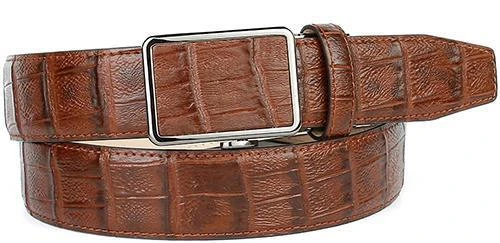 Ledergürtel aus feinem geprägten Kalbsleder Für diesen exklusiven Ledergürtel wurde beidseitig hochwertiges Kalbsleder edel verarbeitet. Eine absolute Innovation ist die zum Patent angemeldete Schließe, mit der sich der Gürtel komfortabel in der Weite stufenlos verstellen lässt.