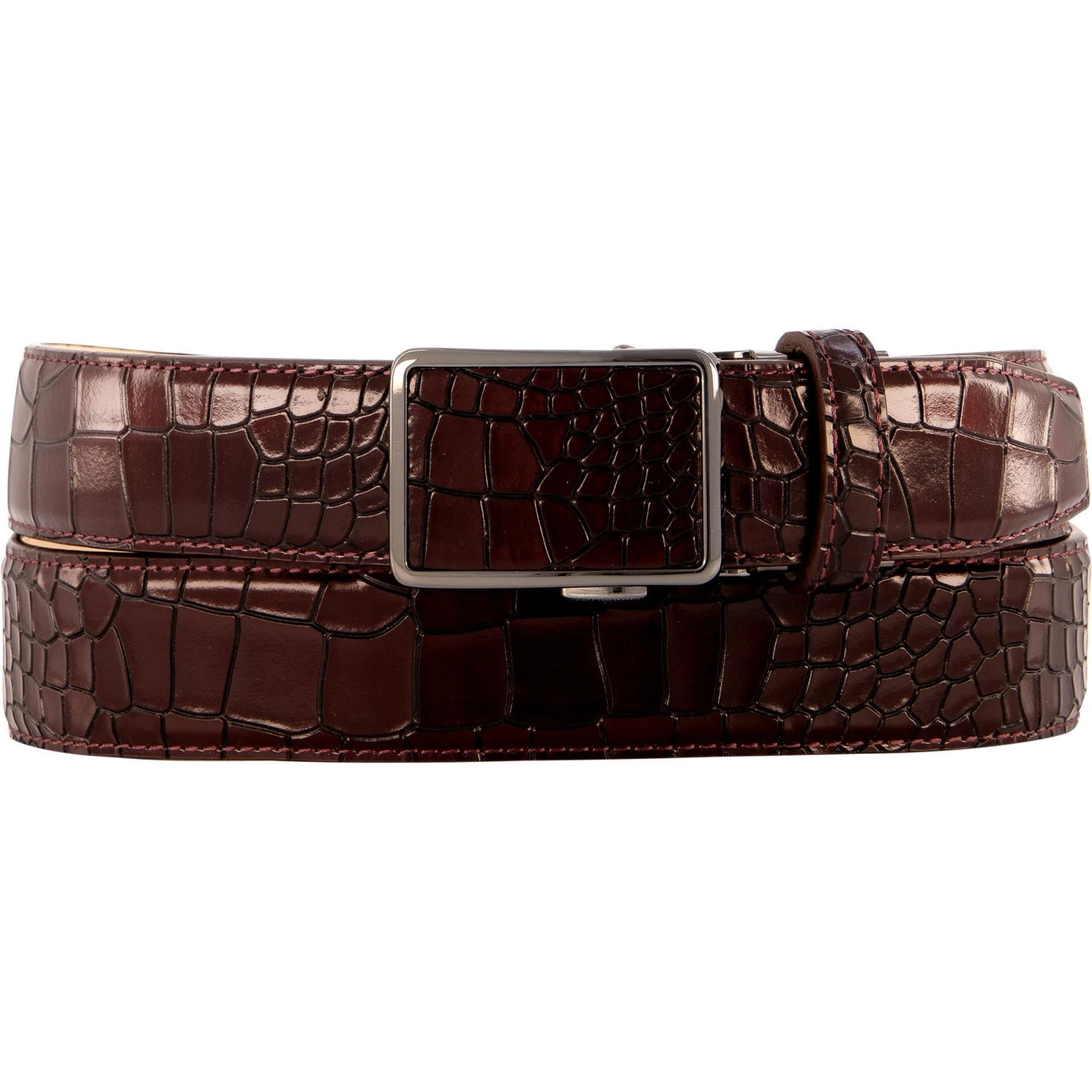 Dieser klassische Gürtel, der sich vordergründig durch seinen Koppel und der interessanten Kroko-Struktur definiert, ist nicht nur optisch ein Genuss, auch die patentierte Verstellbarkeit auf individuellen Maße ist eine praktische Bereicherung. Für modebewusste Männer ein unumgänglicher Aspekt für ein gelungenes Outfit.
