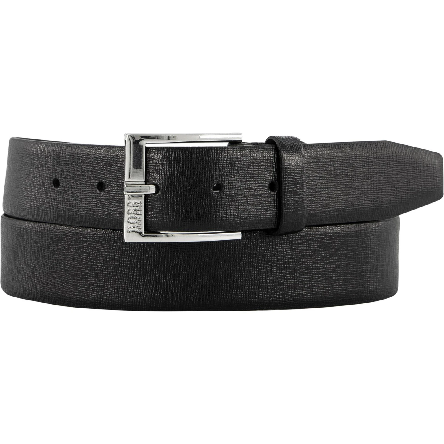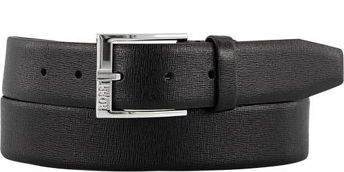 Dieser stilvolle Gürtel aus geprägtem Rindleder mit mattglänzender Dornschließe passt sich unaufdringlich jedem Outfit an – ein zeitloses Modell perfekt für die Business- oder City-Garderobe.
