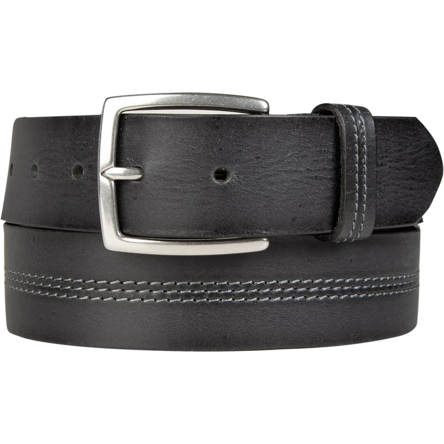 Ein Gürtel der mit seiner Optik und Verarbeitung begeistert. Das Modell ist aus Rindleder gefertigt und präsentiert sich mit einer 3-fachen Kontraststeppnaht in der Mitte. Eine Schließe aus altsilber rundet das smarte Gesamtbild ab.